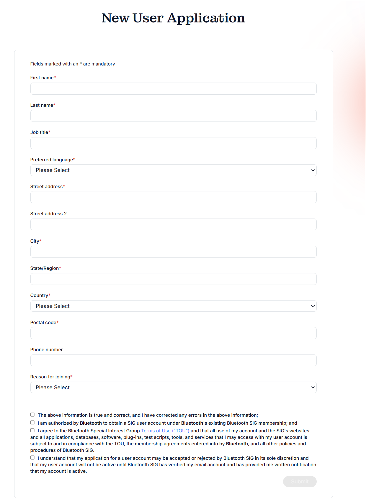 If your company is a member of Bluetooth SIG, you can create your own user account